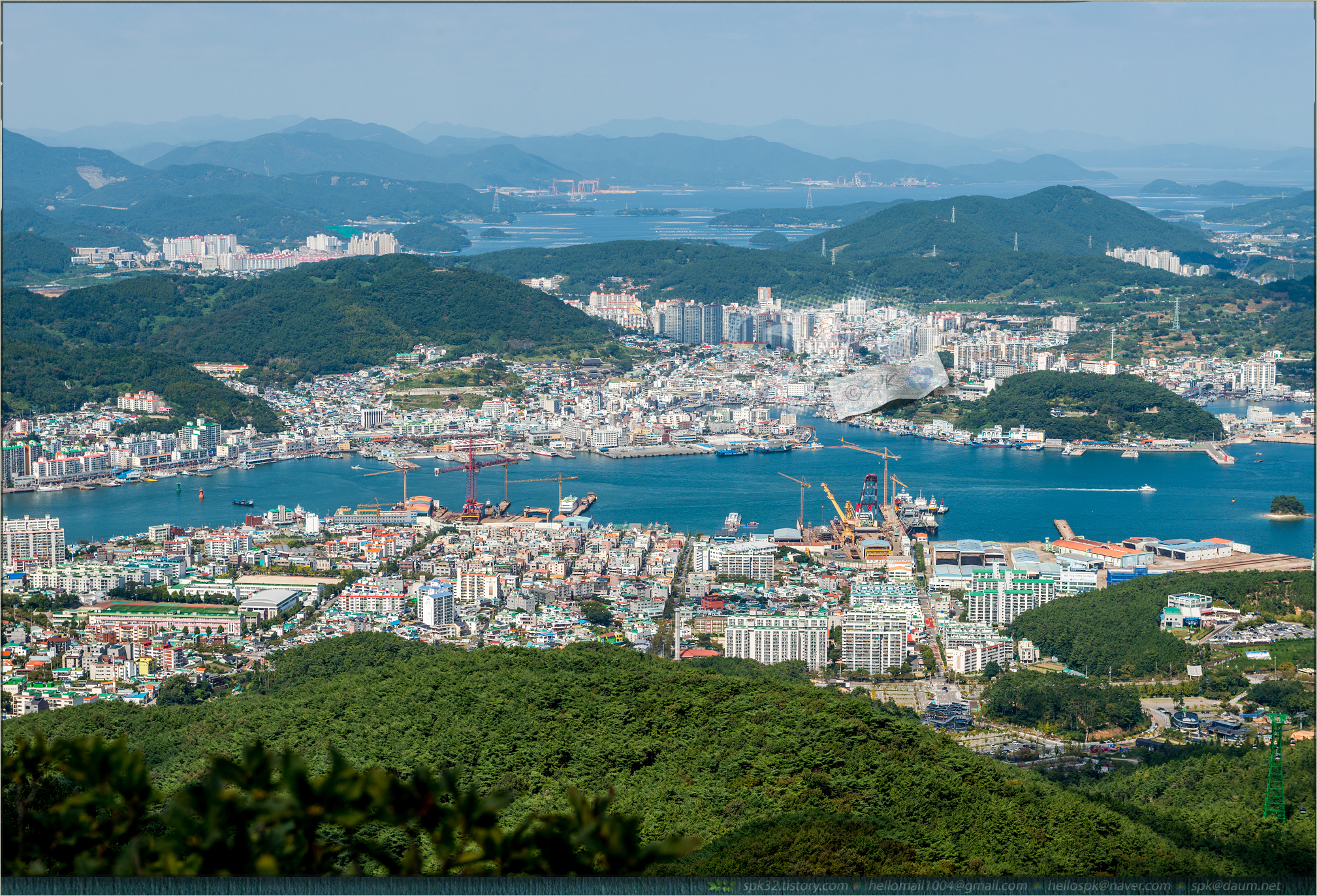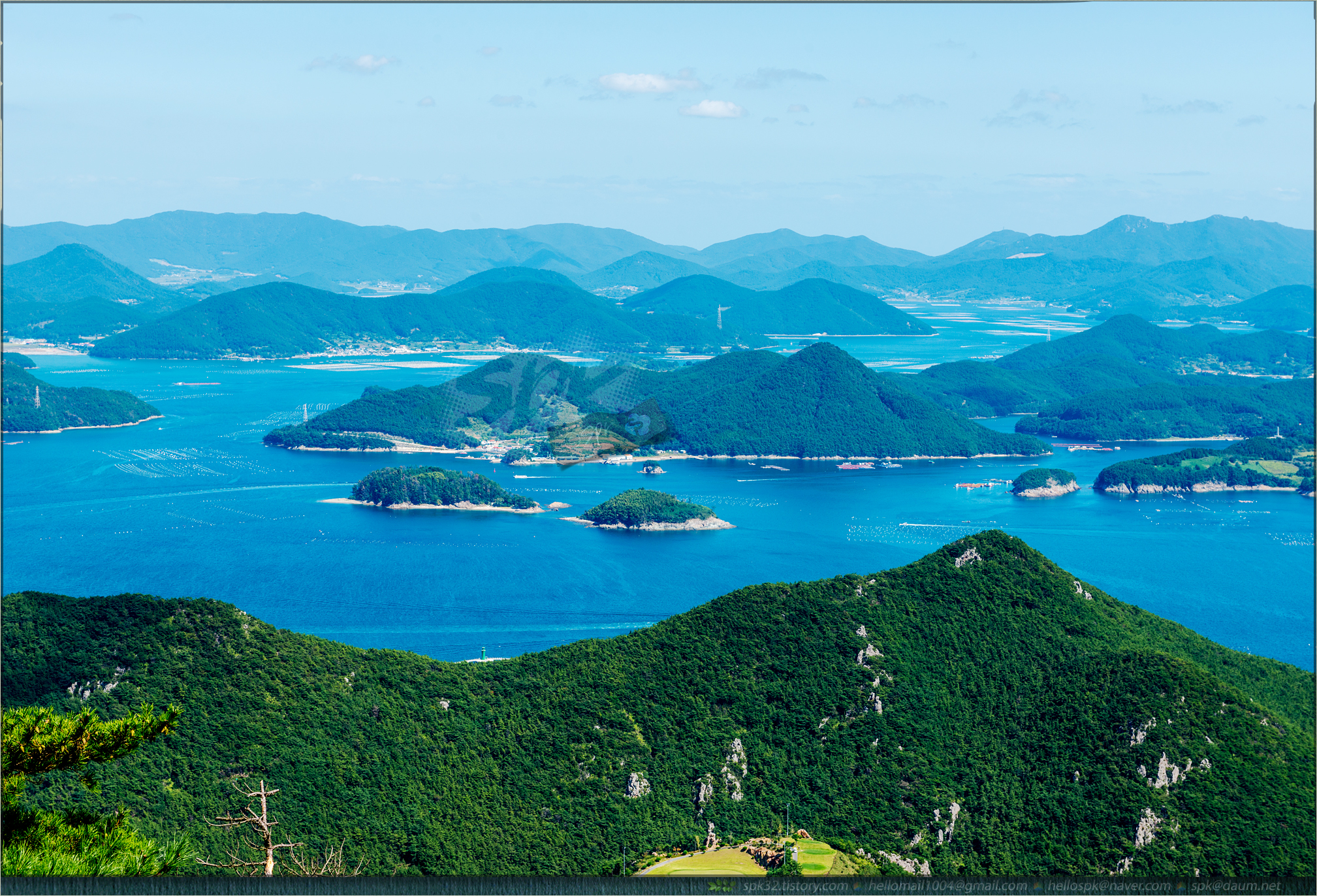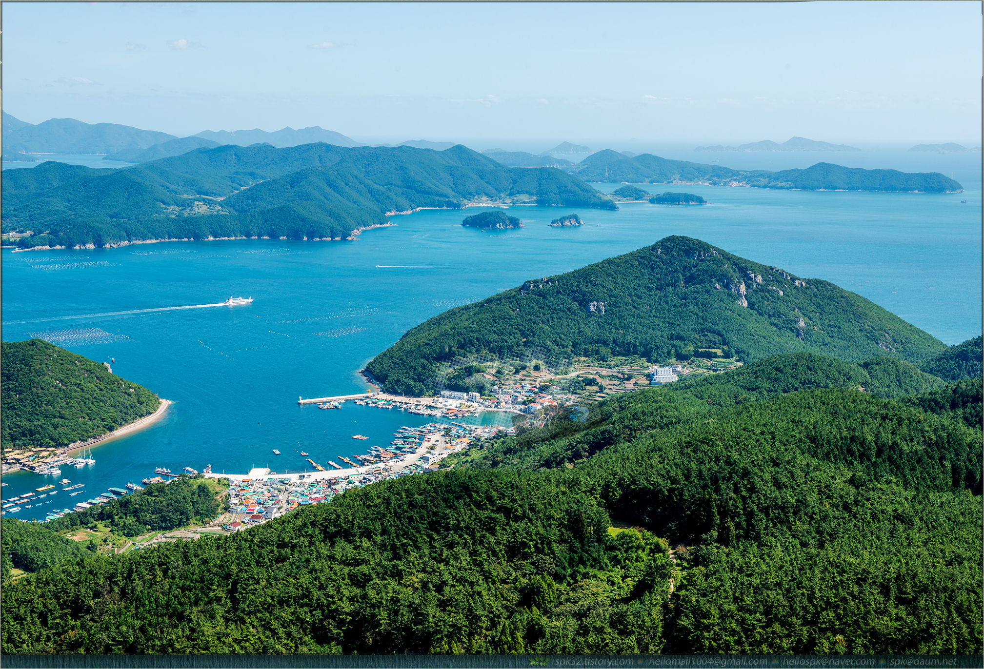미륵산에서 조망해 본 한려해상 다도해의 파노라마.