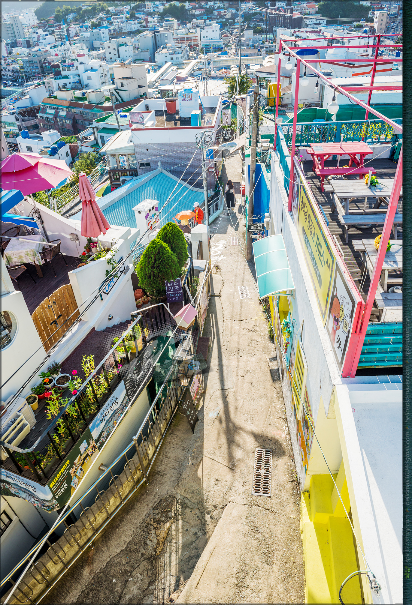 동피랑 벽화마을에서 내려다본 충무시내.
