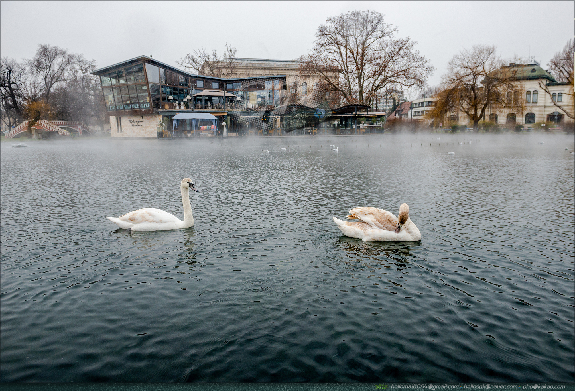 차가운 겨울 날씨임에도 이곳 호수에는 김이 모락모락...