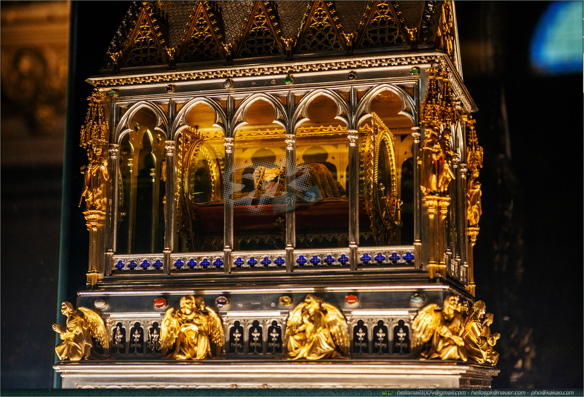 내부에 전시된 여러 종류의 성물들.